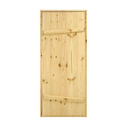 Дверь клиновая предназначена для установки в баню. Двери собираются из строганой доски с пазами. Для того чтобы дверь не деформировалась при высоких температурах и влажности ставится клин поперек двери.