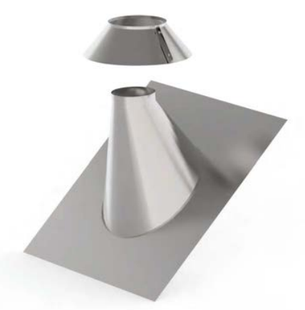 Проход кровли предназначен для предотвращения попадания атмосферных осадков и искр в отверстие прохода дымового канала сквозь кровлю. Фланец служит для предотвращения попадания атмосферных осадков в место стыковки трубы и прохода кровли, плотно фиксируется на трубе при помощи стяжки болта и гайки.