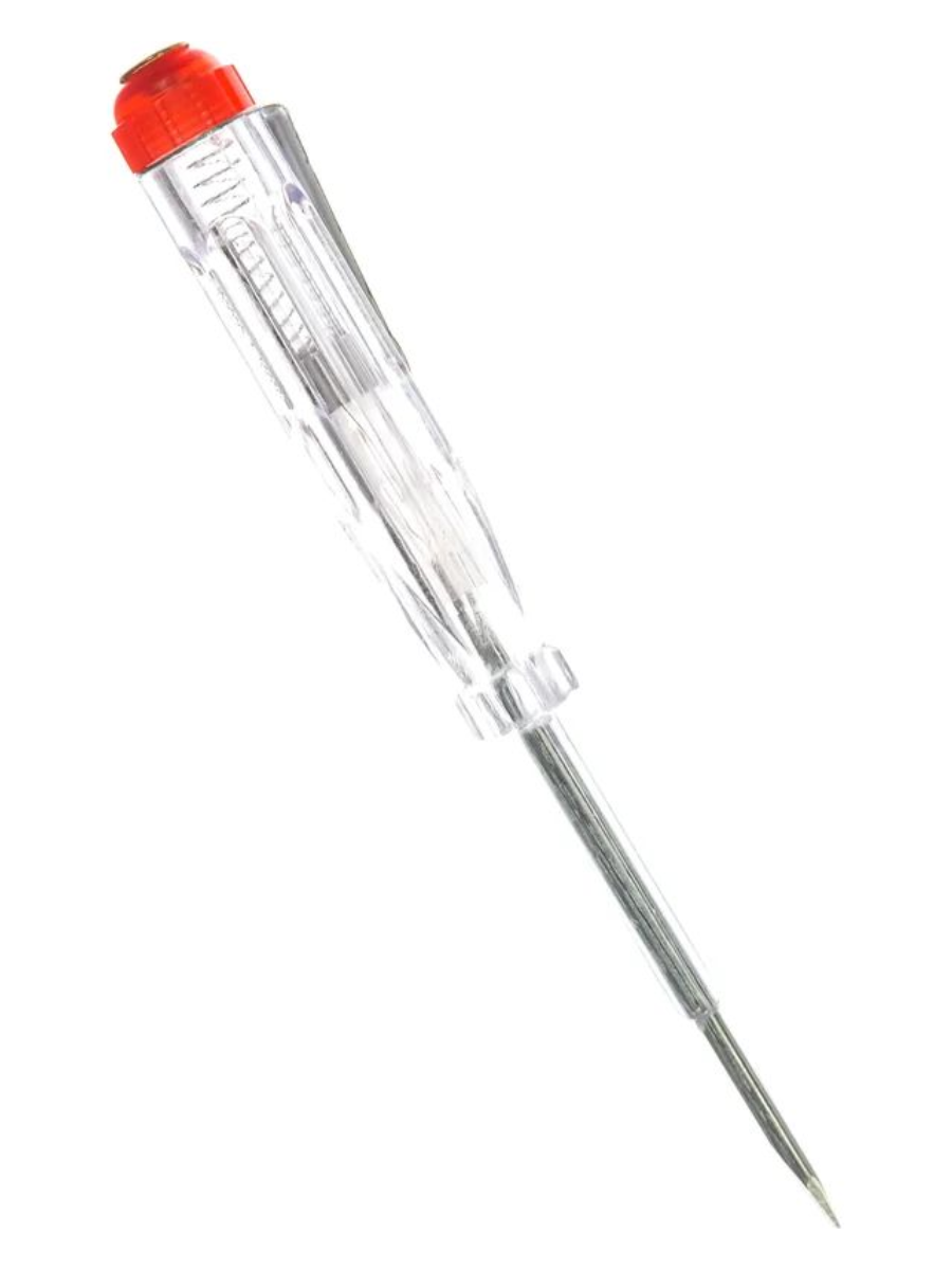 Отвертка индикаторная 100-500V 3x130мм прозрачный, TST500-3 39159 STEKKER поможет быстро и безопасно проверять наличие напряжения в электрических сетях. Электрический ток с поверхности проводника попадает на жало отвертки, далее через резистор с номиналом не менее 0,5 мОм (ограничивает ток) попадает на контакт неоновой лампы. Второй контакт цепи включения лампочки через контакт на рукоятке отвертки замыкается на человеке. У такого типа отвертки емкость и сопротивление тела человека включены в цепь лампочки. То есть прикоснулись жалом к проводу и пальцем к контакту, если есть напряжение – видим свечение неоновой лампочки. Нет контакта с человеком – лампа не светится. Минусом такого типа отверток является высокий порог индикации напряжения, от 60В. Они хороши лишь для определения наличия напряжения и фазы. Определить обрыв цепи при помощи данного инструмента невозможно. Внешним видом он напоминает отвертку, поэтому прибор так и называется – отвертка индикаторная.