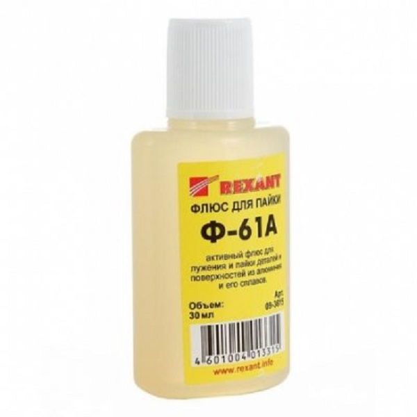 Флюс для пайки Ф-61А (пайка алюминия) 30 мл REXANT предназначен для удаления оксидов с поверхности под пайку, улучшения растекания жидкого припоя при пайке алюминия и алюминиевых сплавов. Изготовлен на основе фторборатов, что значительно выделяет его из всей группы соединений для пайки.