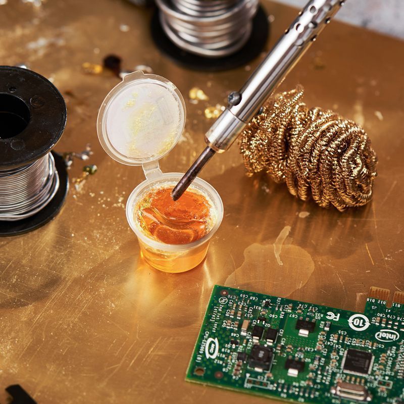 Канифоль сосновая марки А 10 г REXANT применяется для удаления тонких и нестойких оксидов с поверхности под пайку, улучшения растекания жидкого припоя при пайке печатных плат и радиокомпонентов.