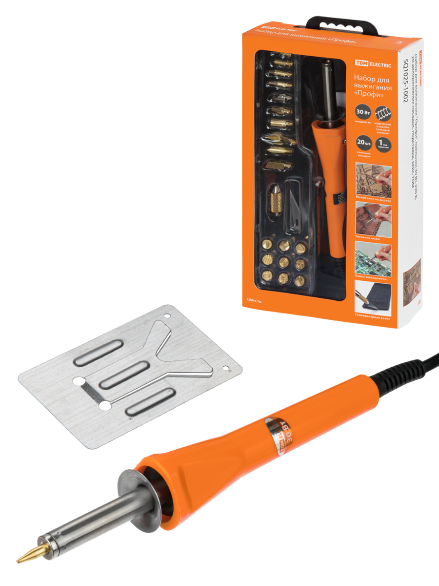 Набор паяльник-выжигатель "Профи", паяльник 30 Вт, 230 В, 20 декоративных насадок SQ1025-1002 TDM Electric применяется для: