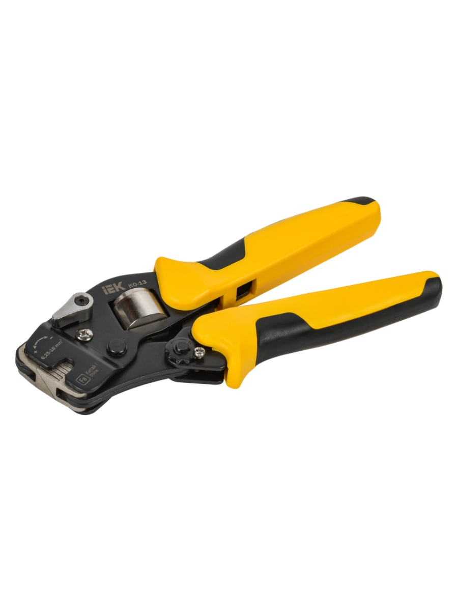 Клещи обжимные торцевые КО-13 0,25-16мм2 (квадрат) ARMA2L 3 A2L3-KL20-C025-016-13 IEK с торцевой матрицей, с квардратным профилем обжима, предназначены для опрессовки втулочных наконечников НШВ, НШВИ и НШВИ2.