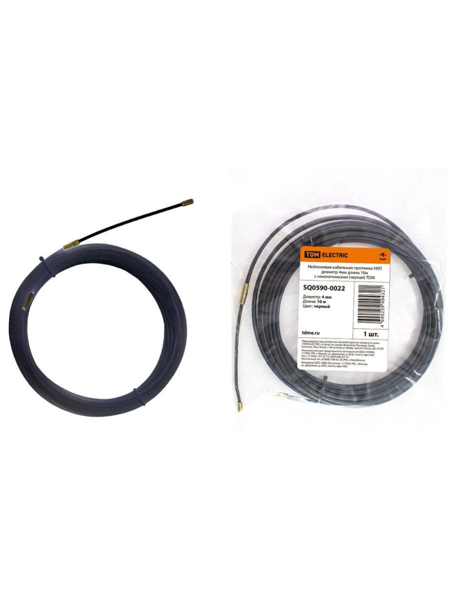 Нейлоновая кабельная протяжка НКП диаметр 4мм длина 25м с наконечниками (черная) SQ0590-0025 TDM Electric применяется для прокладки кабеля различного назначения в трубы, металлорукава, короба и кабельные каналы. Позволяет осуществить ввод тяговых элементов для последующего ввода кабелей в кабельную канализацию внутри производственных, офисных или жилых зданий, закладных труб и городской канализационной сети.