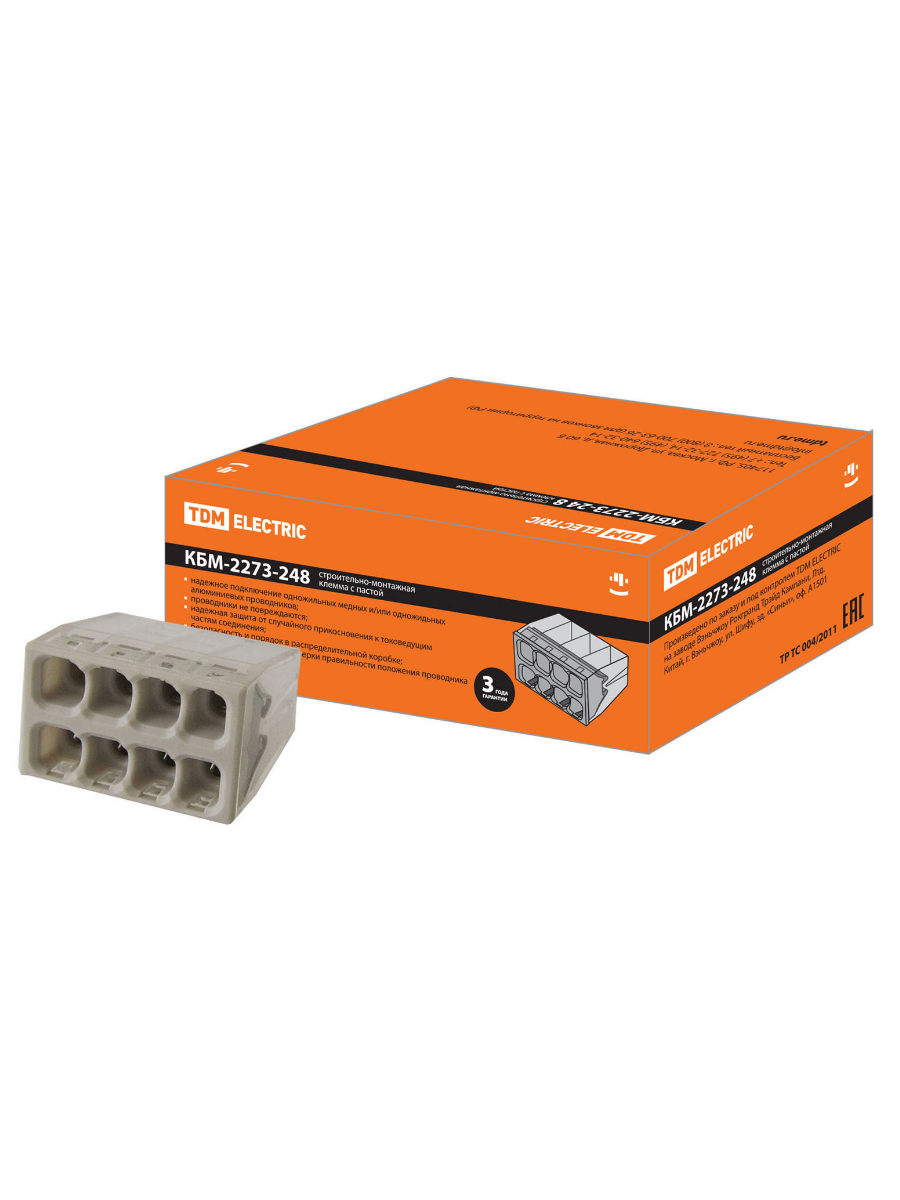 Строительно-монтажная клемма 8 отверстий КБМ-2273-248 (2,5мм2) с пастой TDM