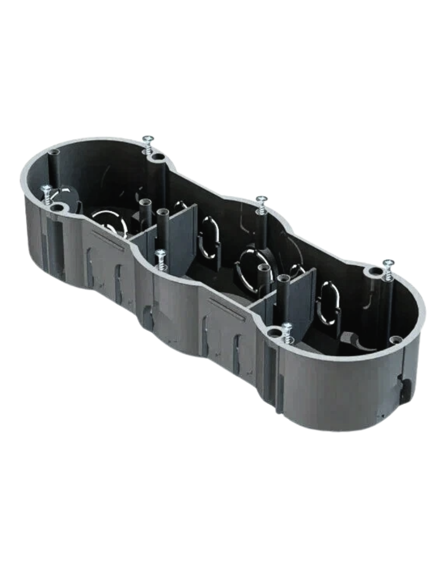 Коробка установочная СП 3-местная д/бетона 212х70х45мм (с саморезами) GE40009 GREENEL подходит для установки в бетонных стенах. Распределительная коробка выполнена из высококачественного материала, что обеспечит долгий срок службы. Для монтажа бытовых розеток, выключателей, светорегуляторов и иных приборов на винтах или металлических захватах в кирпичные или бетонные стены, при скрытой электропроводке блоком из трех приборов, объединенных двойной декоративной рамкой.