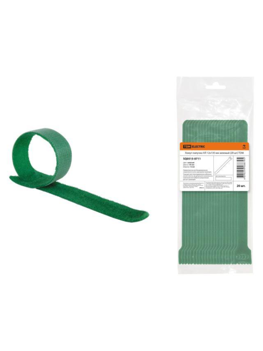 Хомут-липучка ХЛ 12х135 мм зеленый (20 шт) TDM