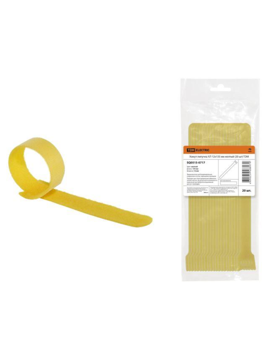Хомут-липучка ХЛ 12х135мм желтый SQ0515-0717 TDM Electric применяется для бандажирования электропроводки в закрытых помещениях и на открытом воздухе, соединения в жгут и маркировки проводов. Для увязки в пучок и монтажа кабелей и проводов.