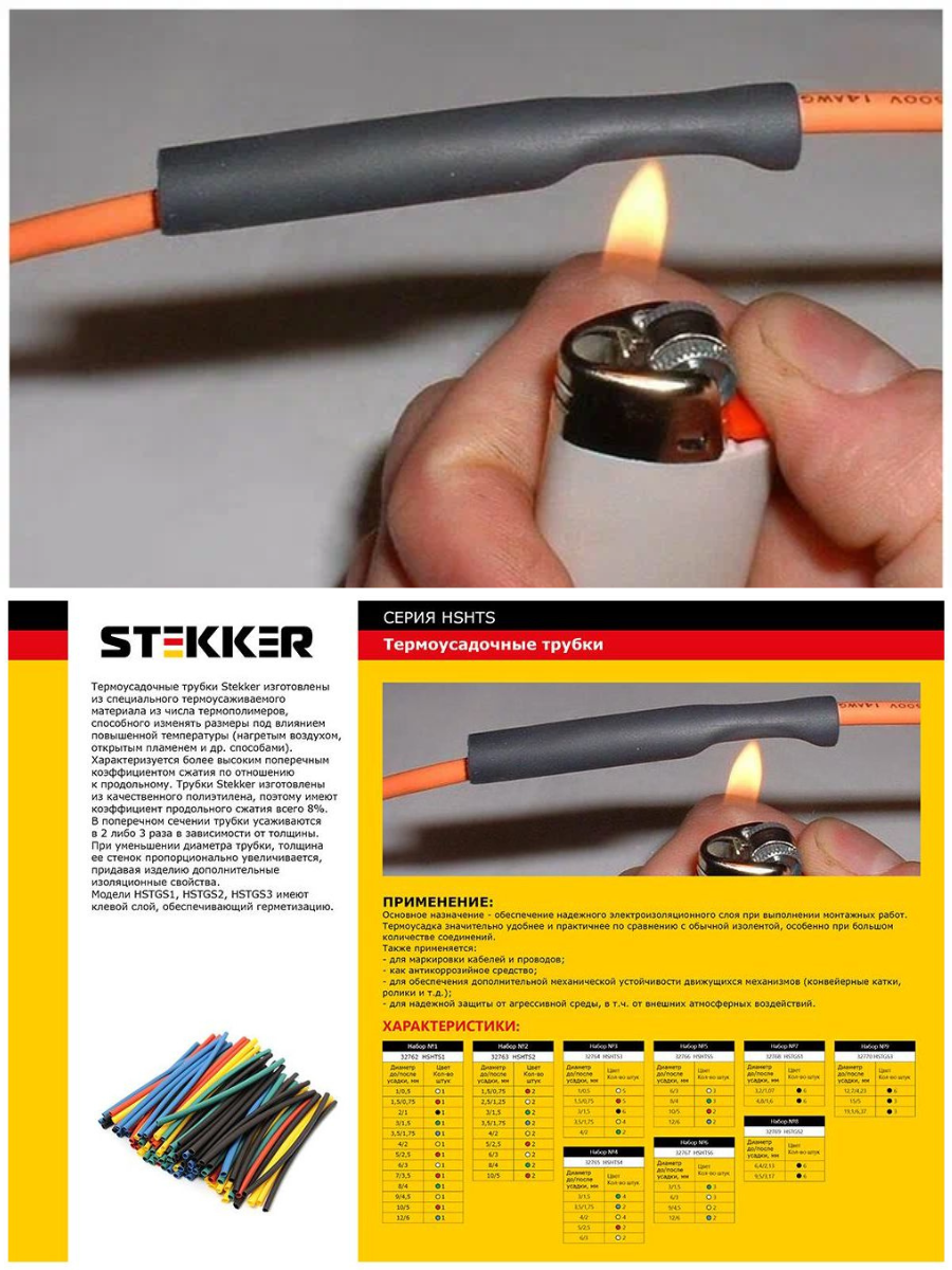 Термоусадочные трубки STEKKER изготовлены из специального термоусаживаемого материала из числа термополимеров, способного изменять размеры под влиянием повышенной температуры (нагретым воздухом, открытым пламенем и др. способами).