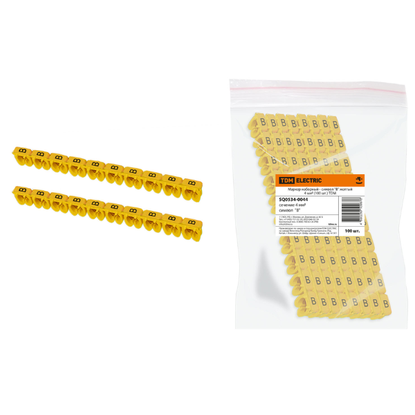 Маркер наборный - символ "B" желтый 4 мм2 (100 шт.) SQ0534-0044 TDM применяются для разметки кабеля в распределительных щитах, местах подключения и т.д.