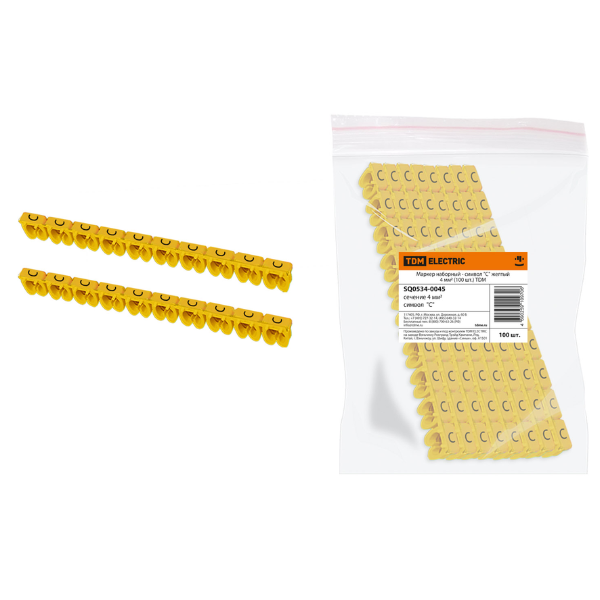 Маркер наборный - символ "C" желтый 4 мм2 (100 шт.) SQ0534-0045 TDM применяются для разметки кабеля в распределительных щитах, местах подключения и т.д.