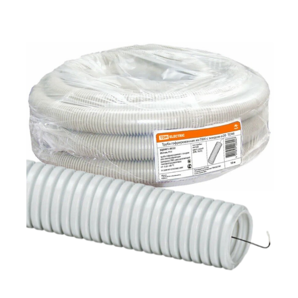Материал- самозатухающийся ПВХ, что исключает возникновение возгорания при коротком замыкании и распространение пламени по трубе. Наличие зонда обеспечивает удобство протяжки кабеля и провода.