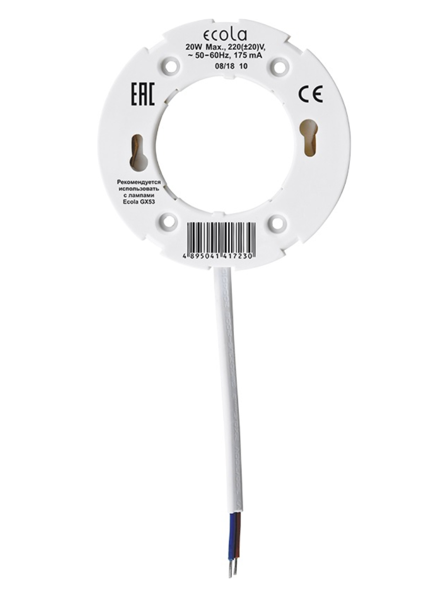 Ecola GX53 патрон с проводом 2*10см GX53LPECB
