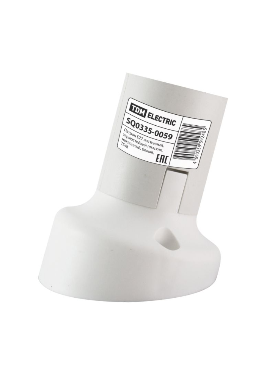 Патрон Е27 термостойкий пластик настенный наклонный белый TDM