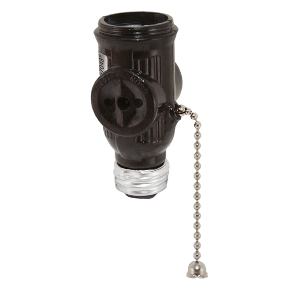 Переходник Е27 розетка карболитовый с выключателем черный применяется для организации временного освещения и использования в качестве розетки, когда единственным источником питания служит основной патрон, подключенный к сети. Для бытового и промышленного применения. Корпус патрона из карболита. Материал контактной группы – латунь.