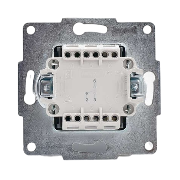 Механизм переключателя проходного 1-кл. 1п СП Karina 10А IP20 белый применяется для включения и выключения освещения в бытовых и производственных условиях. Принцип действия основан на коммутации контактов механическим способом (нажатием) , при этом положения коммутации фиксированы и позволяют находится в этом режиме достаточно долго, вплоть до следующего воздействия.