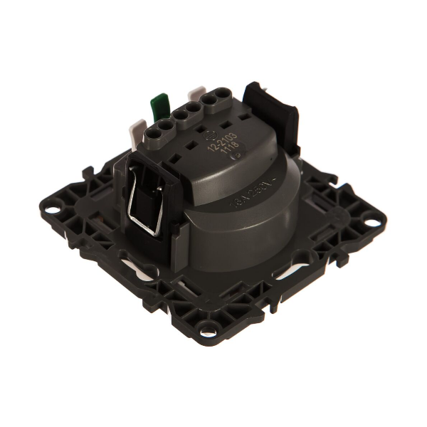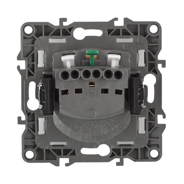 Механизм розетки 1-м СП 16А IP20 250В 2P+ESchuko с защитной шторкой и крышкой, номинальные хар-ки 16А 250В . Корпус из поликарбоната, оснащён автоматическими клеммами для быстрой и надёжной фиксации жил кабеля в механиме. Парные клеммы обеспечивают соединение шлейфом. Монтаж в подрозетник производится и на винты, и на лапки.
