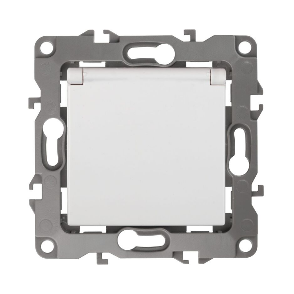 Механизм розетки 1-м СП Эра12 12-1193576 2103-01 16А IP20 16AX 250В 2P+E Schuko защ. шторки с крышкой бел.Эра Б0014693