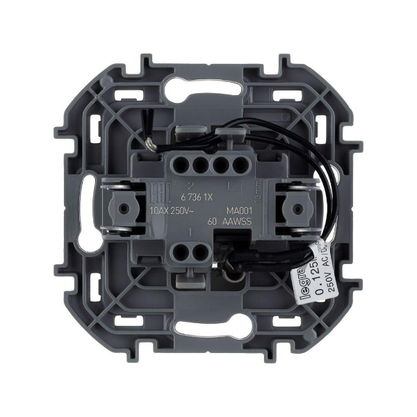 Механизм выключателя 1-клавишный Inspiria 10А IP20 250В 10AX с подсветкой /индикацией (цвет антрацит) электрическое устройство, которое может создавать или разрывать электрическую цепь, прерывая ток или отводя его от одного проводника к другому. Механизм выключателя во время работы удаляет или восстанавливает проводящий путь в цепи.