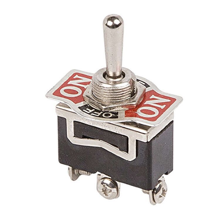 Тумблер 250V 15А(3c) ON-OFF-(ON) однополюсной применяется для коммутации электрических цепей переменного тока напряжением до 250В, на лицевых панелях в качестве комплектующих изделий различного электрооборудования. Монтаж осуществляется без применения винтов на плоских панелях толщиной от 0.8мм до 4мм. Подключение контактов осуществляется с помощью винтов.