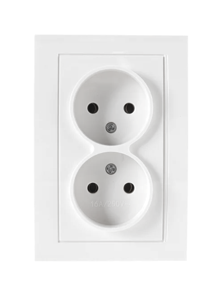 Розетка 2 мест. СП Бриллиант без заземления и без защитных шторок (цвет белый) 16А IP20 250В  7949797 используется для подключения к электрической сети бытовых устройств.