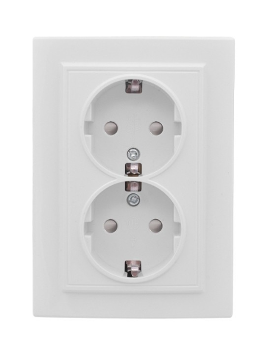 Розетка 2 мест. СП Бриллиант с заземлением и без защитных шторок (цвет белый) 16А IP20 250В 7947533 используется для подключения к электрической сети бытовых устройств.