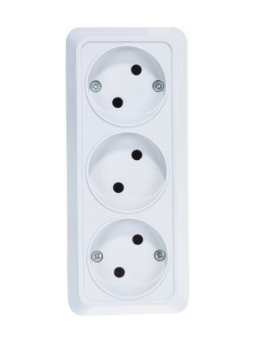 Розетка 3-м ОП Олимп 16А IP20 б/з белая 1160 UNIVersal