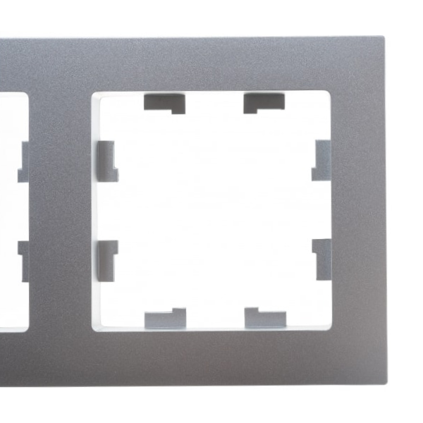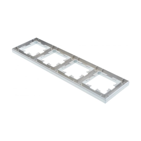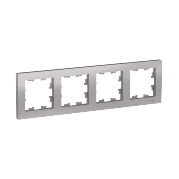 Рамка 4-м AtlasDesign SchE ATN000304 универсальная горизонтальная (цвет алюминий) является декоративным элементом современных розеток и выключателей и предназначена для скрытия суппорта и стыка подрозетника со стеной.