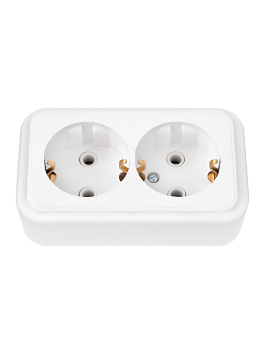 Розетка 2 мест. с заземлением ОУ белая 16А 250В РА16-261 двухместная с заземляющим контактом открытой установки.