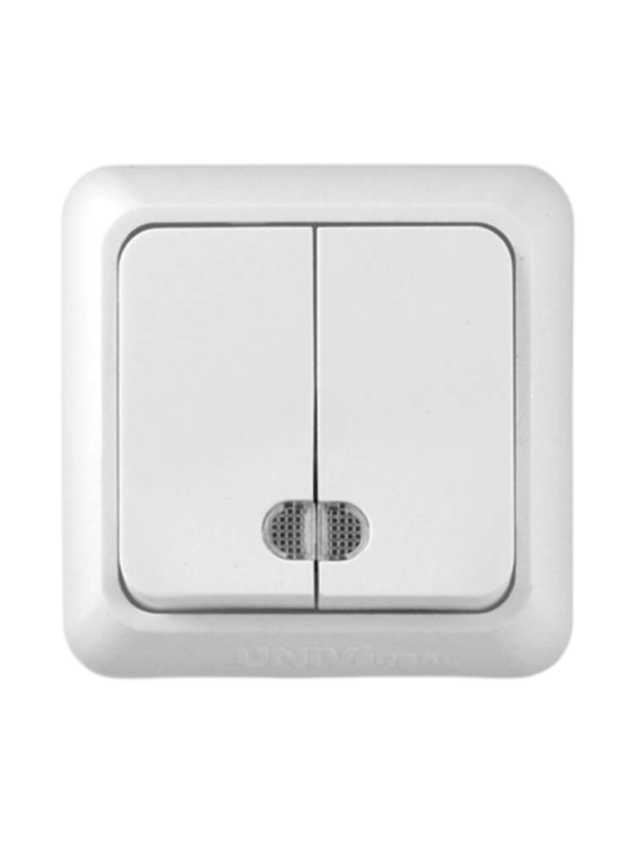 Выключатель 2-кл.ОП Олимп 10А IP20 с подсветкой бел.UNIVersal О0123