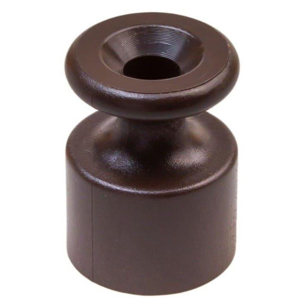 Изолятор ОП пластик коричневый B1-551-22-100 Bironi применяется для наружного монтажа провода в деревянном доме, офисе, гостинице, загородном коттедже.