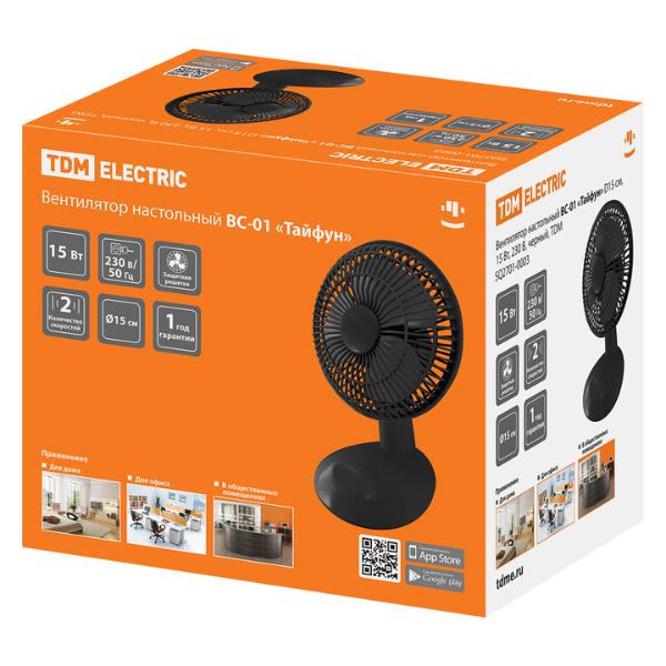 Вентилятор настольный ВС-01 "Тайфун" D15 см, 15 Вт, 230 В, черный, TDM