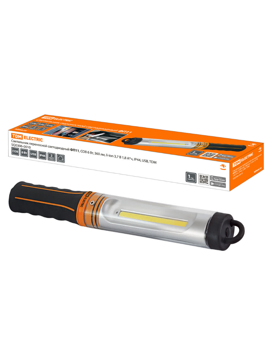 Светильник переносной светодиодный ФП11, COB 6 Вт, 360 лм, li-ion 3,7 В 1,8 А*ч, IP44, USB SQ0306-0010TDM применяется для местного освещения рабочей зоны: в автомастерских, сервисах, гаражах, подсобных помещениях.