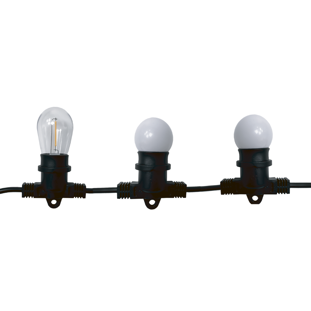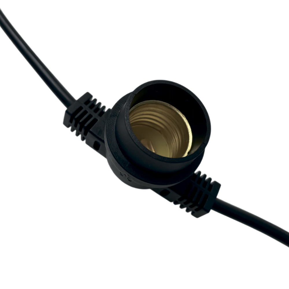 Гирлянда уличная Белт-лайт 12 метров PBL-S40/ L12+1.5 Black E27 IP65 предназначена для освещения и создания световой иллюминации улиц, кафе, дворов, прогулочных дорожек, лыжных трасс, стадионов и парков. Патрон изготовлен из латуни, на каждом патроне имеется уплотнительное кольцо.