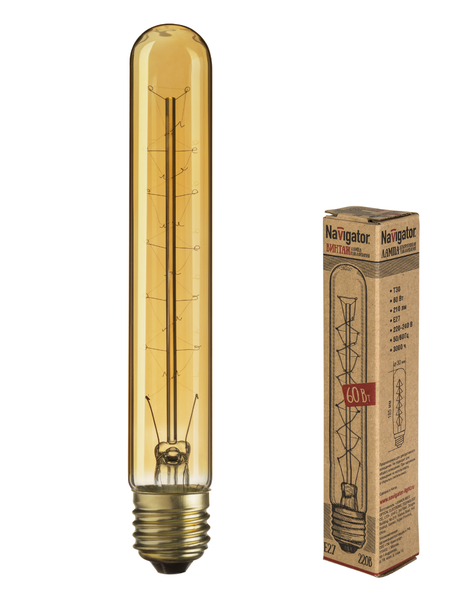 Лампа накаливания декоративная 60вт T30 230в Е27 винтаж 71955 Navigator Group