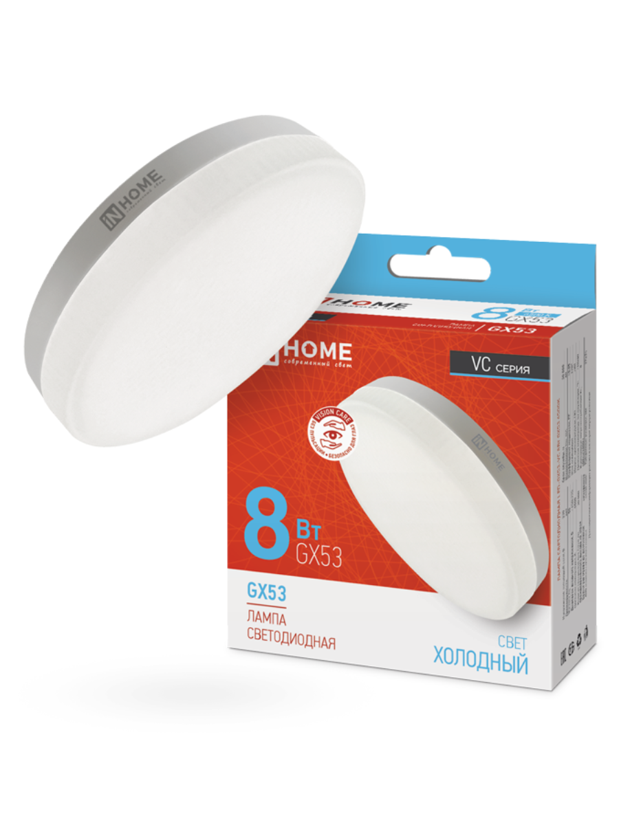 Лампа светодиодная LED-GX53-VC 8Вт 230В 6500К 720лм IN HOME 4690612020747