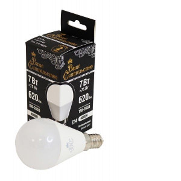 ВАШЕ СИЯТЕЛЬСТВО лампа св/д шар G45 E14 7W(620lm) 4000K 4K 89x45 матов, пласт/алюм. IC-драйвер 2г