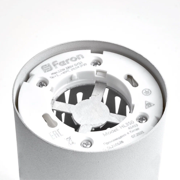 Светильник накладной спот HL350 св/д подсветка белый 80х80х100мм 41453 Feron под популярную лампу GX53 с подсветкой. Отверстия в металлическом плафоне и дополнительная подсветка создают интересные световые узоры на поверхности, на которой закреплён светильник. Все необходимое для монтажа включено в комплект. Патрон выполнен из плотного полимера РВТ, не поддерживающего горение. Прочный металлический корпус.