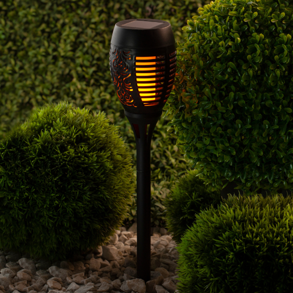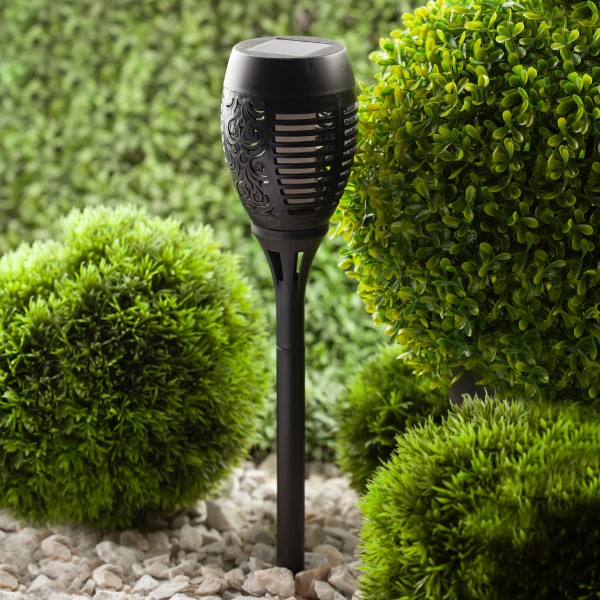 Садовый светильник Факел применяется как декорация в беседках, на терассах, а также при оформлении садовых дорожек и клумб. Светильник заряжается в течение всего светового дня.