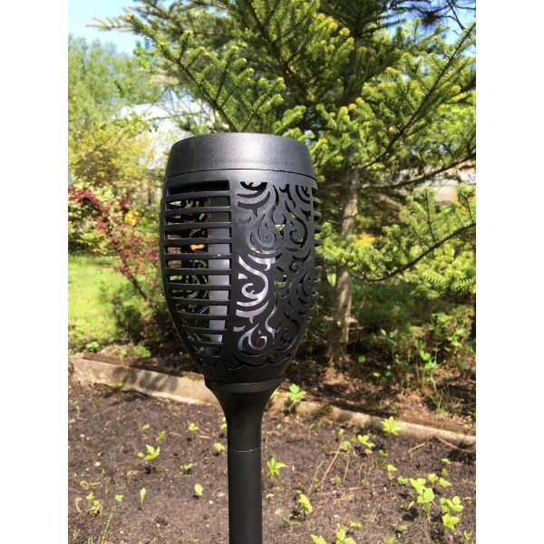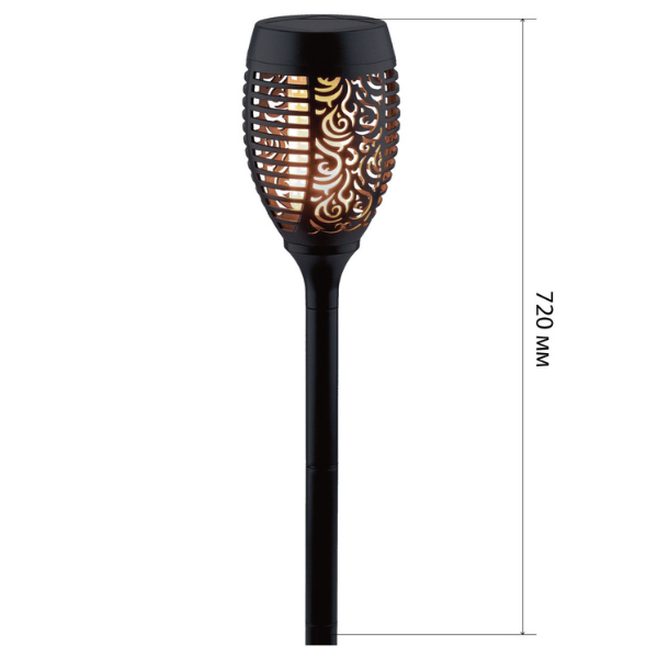 Садовый светильник Факел применяется как декорация в беседках, на терассах, а также при оформлении садовых дорожек и клумб. Светильник заряжается в течение всего светового дня.