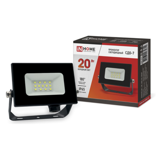 Прожектор сд СДО-7 20Вт 230В 6500К IP65 черный IN HOME