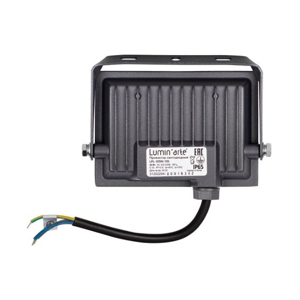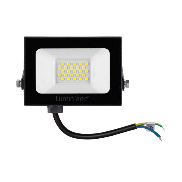 Прожектор Lumin'arte светодиодный 20Вт 5700K 750лм LFL-10W/05 чёрный предназначен для внутреннего и наружного освещения помещений, парковок, придомовых территорий, дачных участков, фасадов зданий и рекламных щитов.