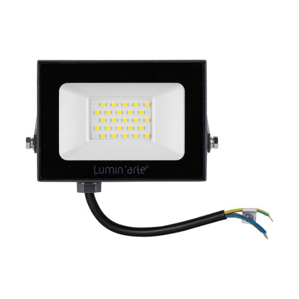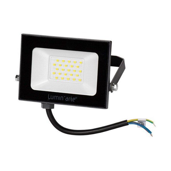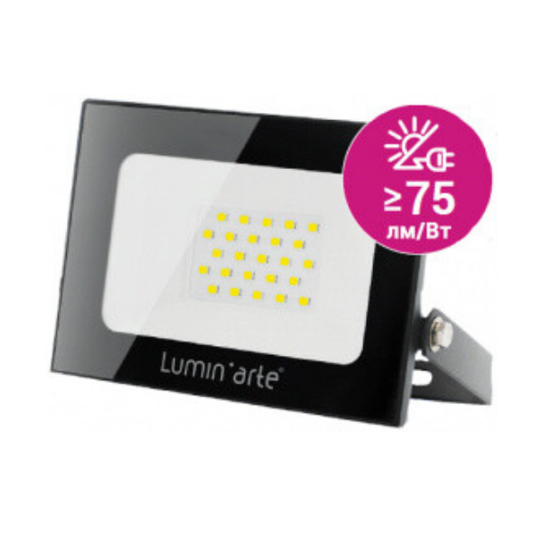 Прожектор светодиодный Lumin'arte LED 30Вт 5700K степень защиты IP65 черный предназначен для внутреннего и наружного освещения помещений, парковок, придомовых территорий, дачных участков, фасадов зданий и рекламных щитов. Универсальное крепление в комплекте. Защита от перегрева и скачков напряжения.