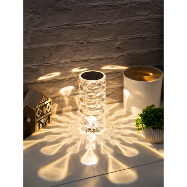Светильник декор. настольный Crystal Water 190x90 сенсор/димм 19162 СТАРТ может использоваться как предмет декора и для чтения, расслабления и сна. Устройство имеет кристаллическую форму, поэтому проецирует свет в необычных узорах. Вы можете выбирать нейтральную, теплую и холодную температуру. Варианты свечения и яркость света можно легко переключать на сенсорной панели управления. Светильник СТАРТ Crystal работает от встроенной батареи, поэтому вы можете размещать устройство в любой комнате дома. Даже в детской, потому что светильник не нагревается во время эксплуатации. Для восполнения уровня батареи светильника требуется 4 часа. Его также можно подключать к сети через USB-кабель.