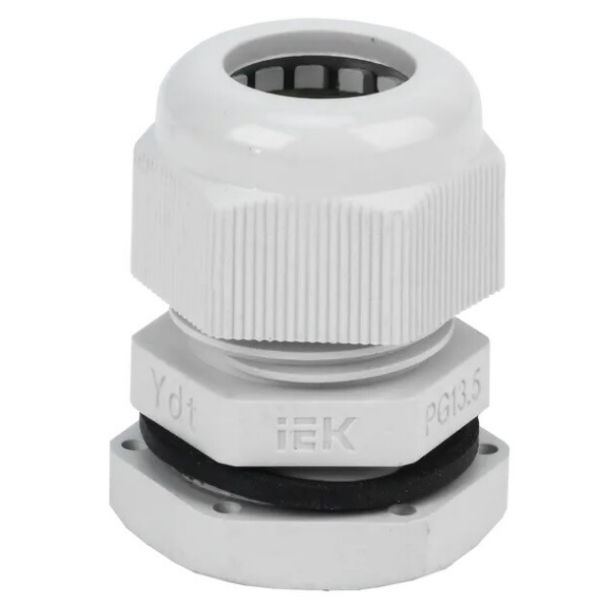 Сальник PG13.5 d7-11мм YSA20-12-13-54-K41 IEK предназначен для ввода проводов и кабелей в электрощитовое оборудование с целью защиты проводников от механического повреждения и защиты самой сборки от проникновения пыли и влаги в месте ввода. Сальник состоит из корпуса, уплотнителя, гайки уплотнения, прокладки и фиксирующей гайки. Установка сальника производится при помощи трубного (газового) ключа.