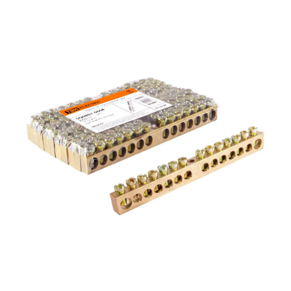 Нулевая шина 14 групп/крепеж по центру, сечение 6х9 мм. позволяет создать сразу несколько точек подключения нагрузок от общего ввода к нулевому проводнику, обеспечить неразрывность цепи на участке от заземления до конкретной нагрузки, а также выполнить разделение защитного и рабочего нулевых проводников.