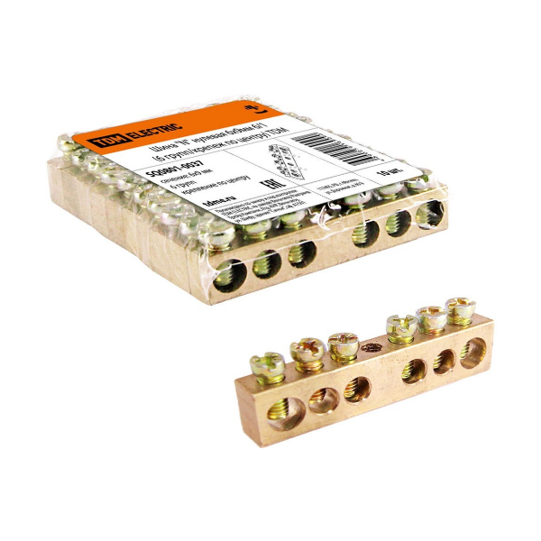 Нулевая шина 6 групп/крепеж по центру, сечение 6х9 мм. позволяет создать сразу несколько точек подключения нагрузок от общего ввода к нулевому проводнику, обеспечить неразрывность цепи на участке от заземления до конкретной нагрузки, а также выполнить разделение защитного и рабочего нулевых проводников.