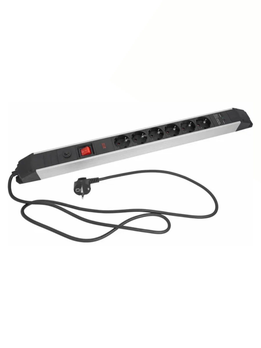- Сетевой удлинитель-фильтр позволяет подключить к сети одновременно до шести единиц бытовой и офисной техники суммарной мощностью 3500 Вт.
