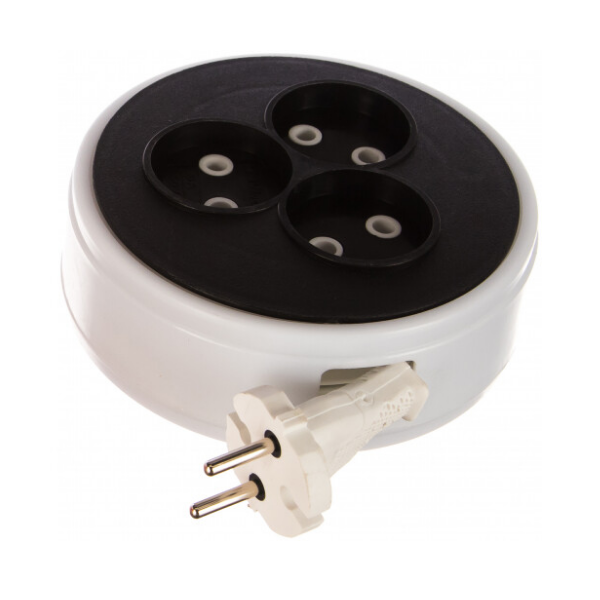 Удлинитель 3х5м без заземления 6А степень защиты IP20 У6-004 рулетка предназначен для подключения электрических приборов на расстоянии до 5 м от стационарной розетки. Применяется в быту, на строительных площадках. Корпус изготовлен из пластика.