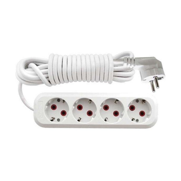 Удлинитель 4х2м с заземлением 10А степень защиты IP20 У10-555 ПВС 3х0.75 - электротехническое устройство, предназначенное для подключения электрических приборов в местах, удалённых от стационарных розеток на расстояние до 2 м. Применяется в быту, на строительных площадках. Корпус изготовлен из пластика.